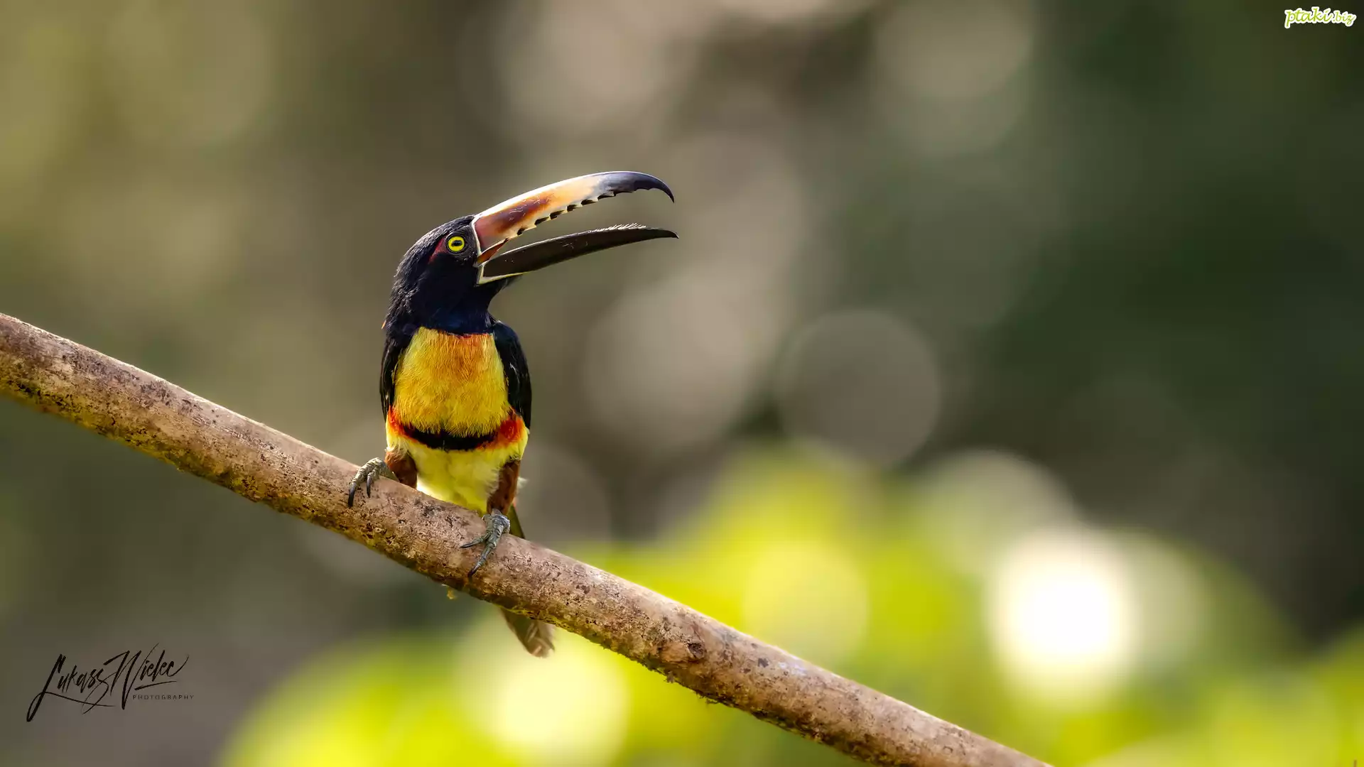Ptak, Tukan, Arasari obrożny, Gałąź