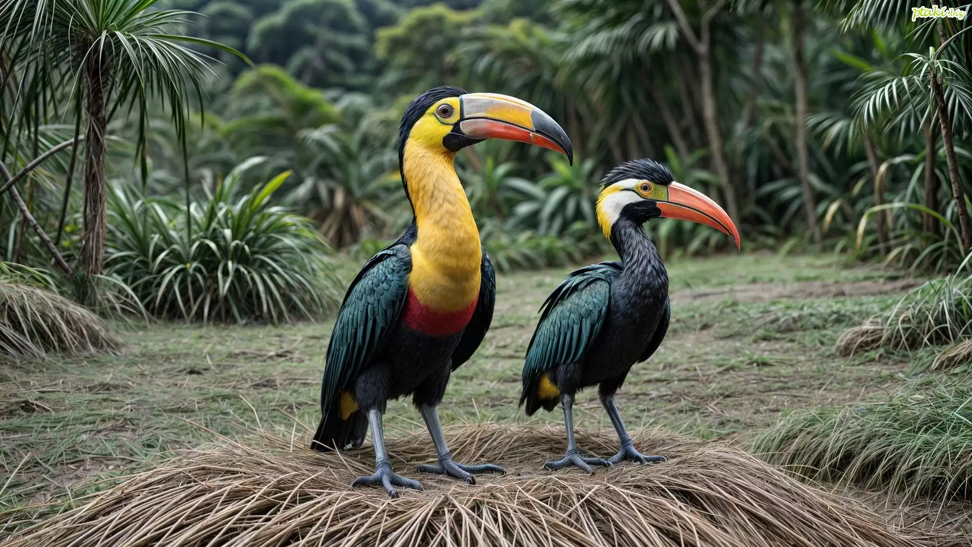 Dwa, Tukany, Gniazdo, Drzewa, Grafika