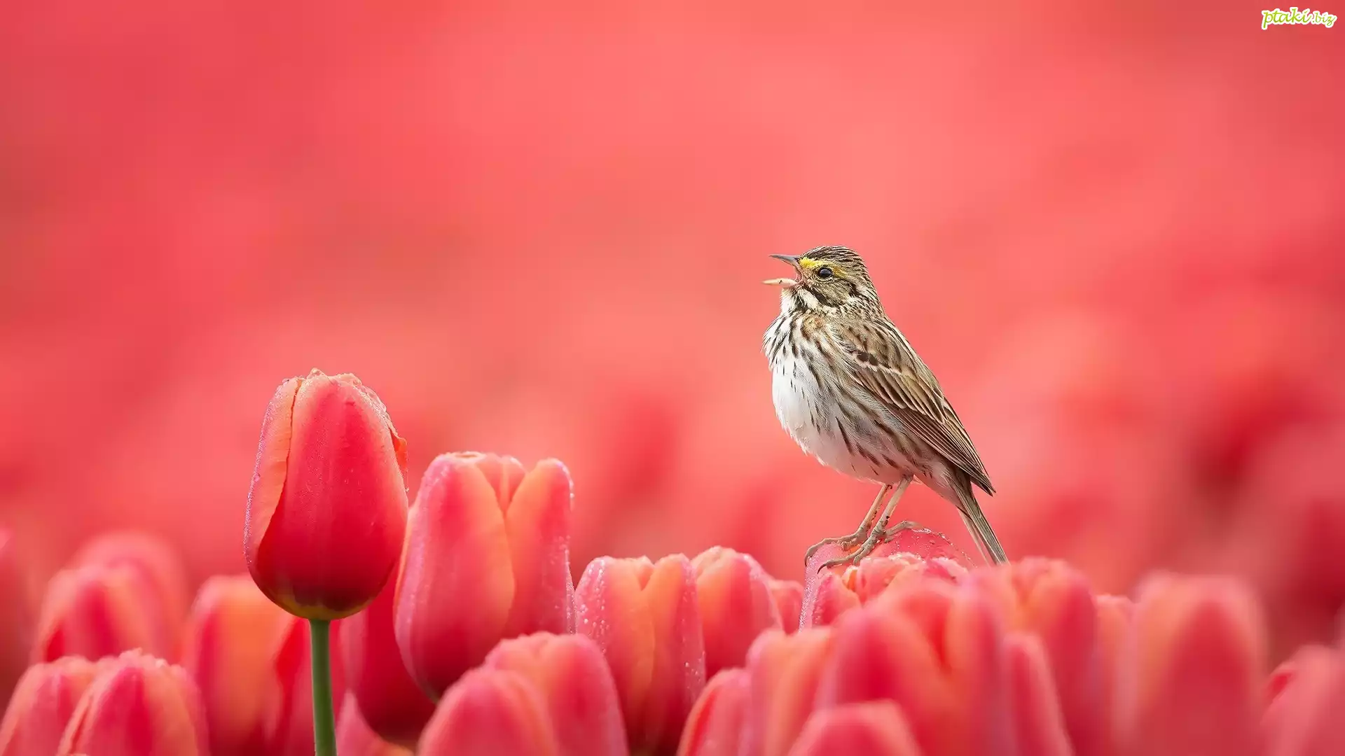 Czerwone, Tulipany, Ptak, Bagiennik żółtobrewy