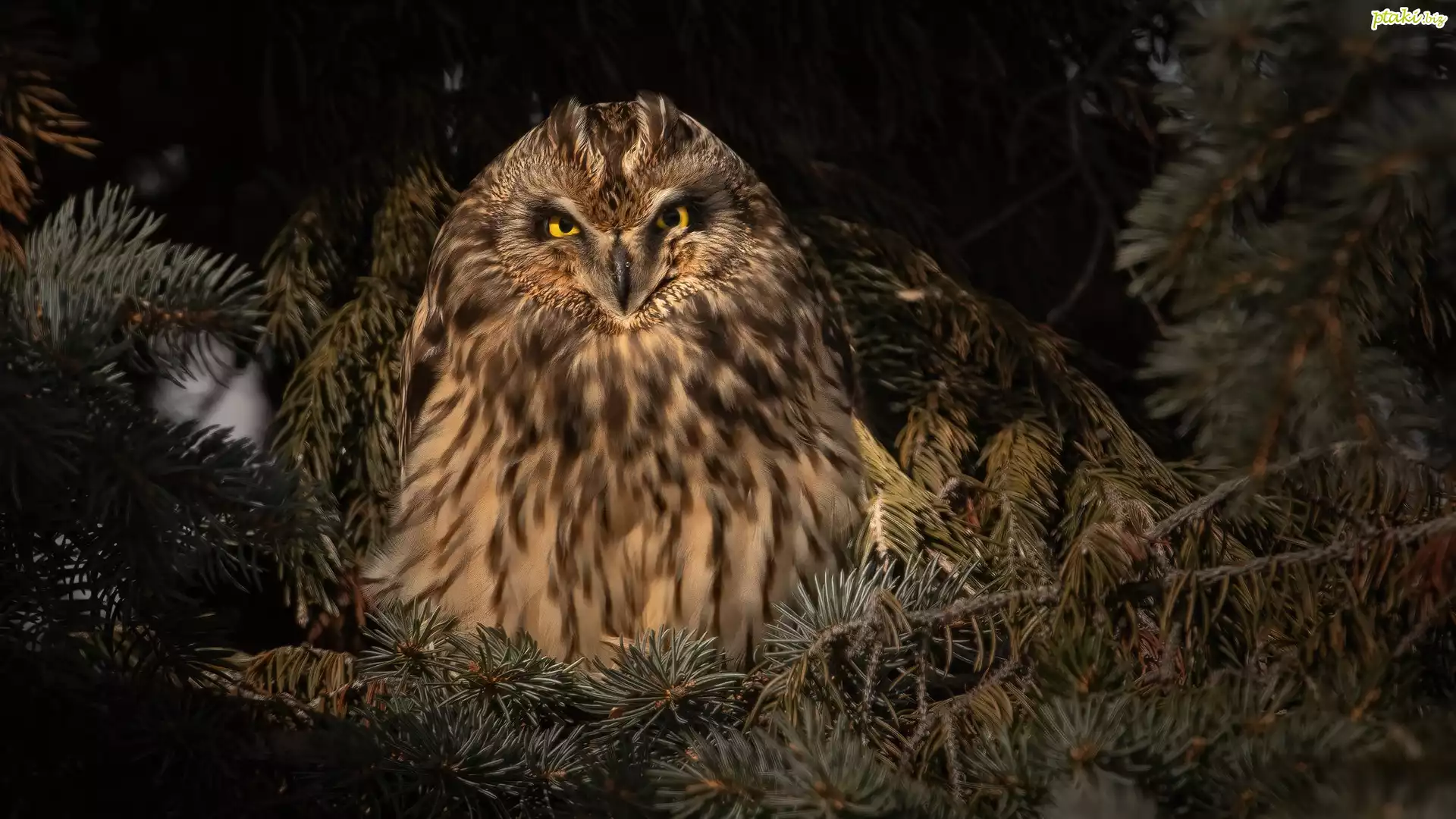 Sowa, Uszatka błotna, Sosna, Gałęzie