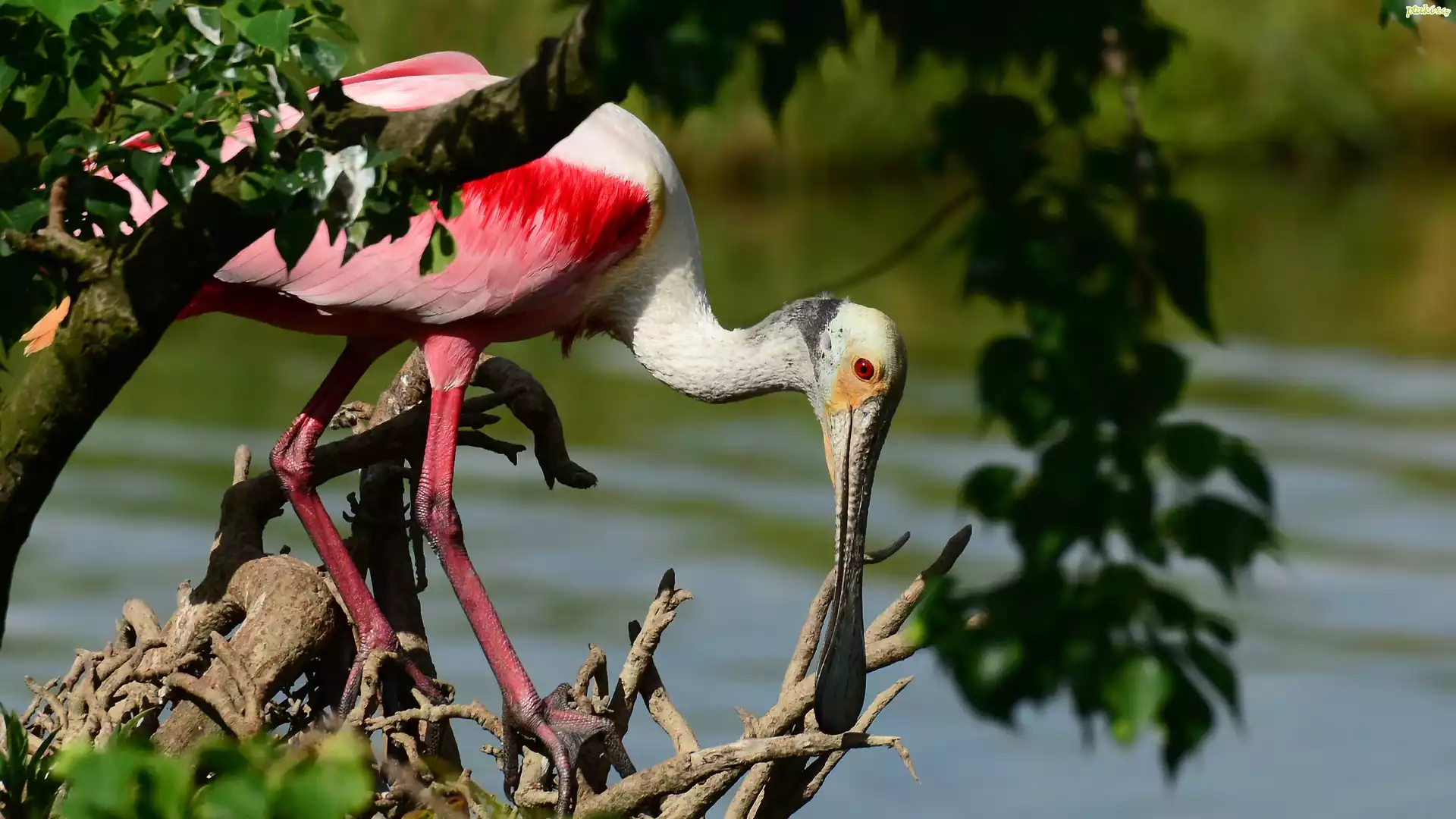 Warzęcha, Woda, Drzewo, Gałęzie, Liście
