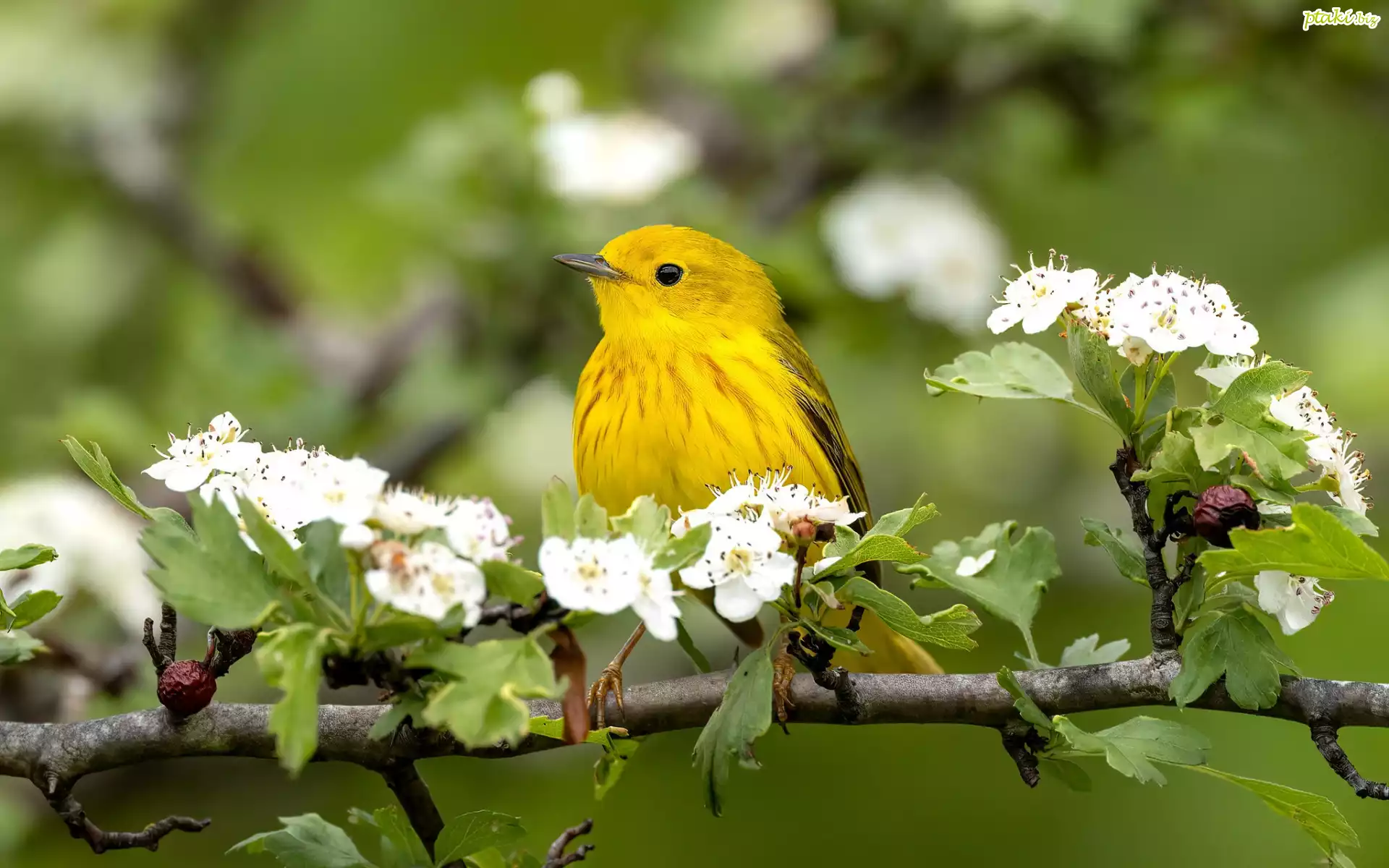 Kwiaty, Gałąź, Ptak, Żółty, Lasówka złotawa, Kwitnienie, Wiosna