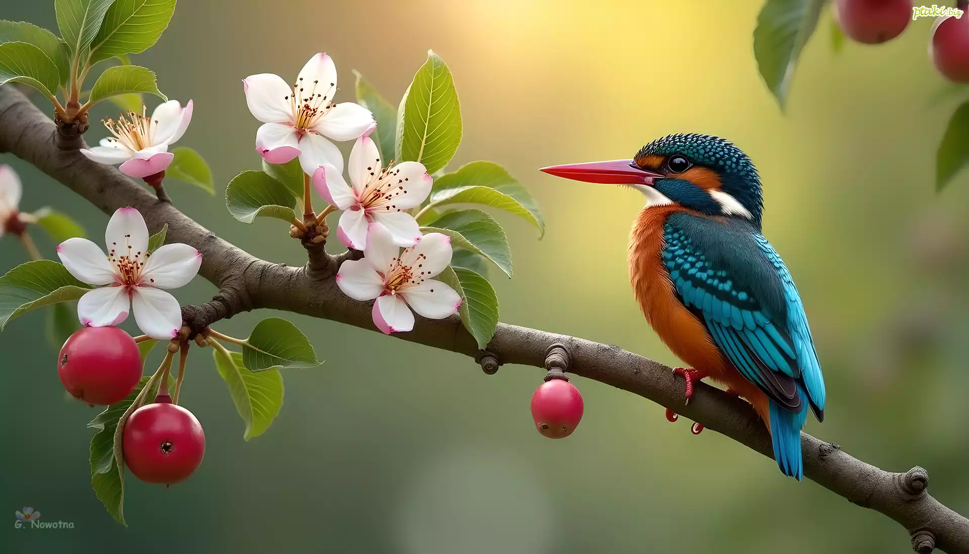 Kwiat wiśni, Zimorodek, Gałąź, Liście