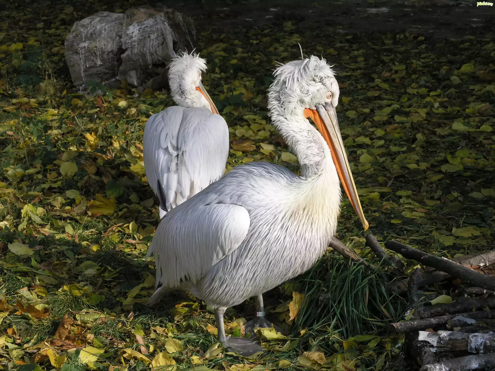 Pelikany, Woda, Liście
