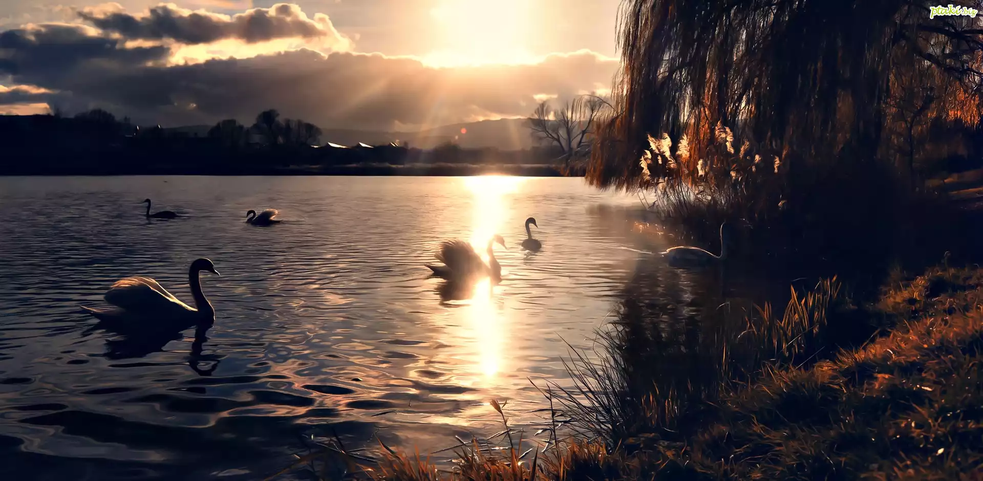 Wschód Słońca, Jezioro, Łabędzie
