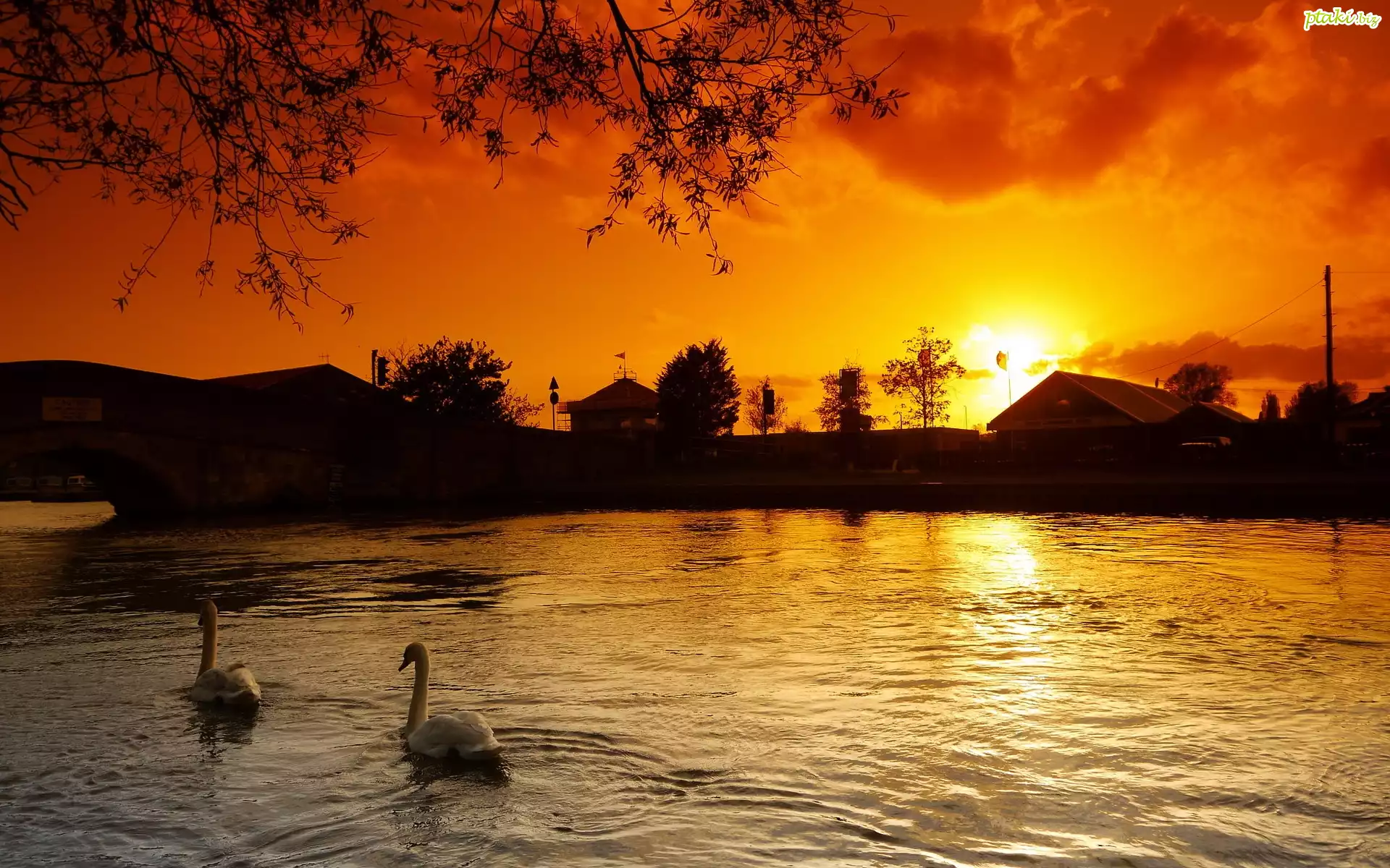 Łabędzie, Jezioro, Zachód Słońca