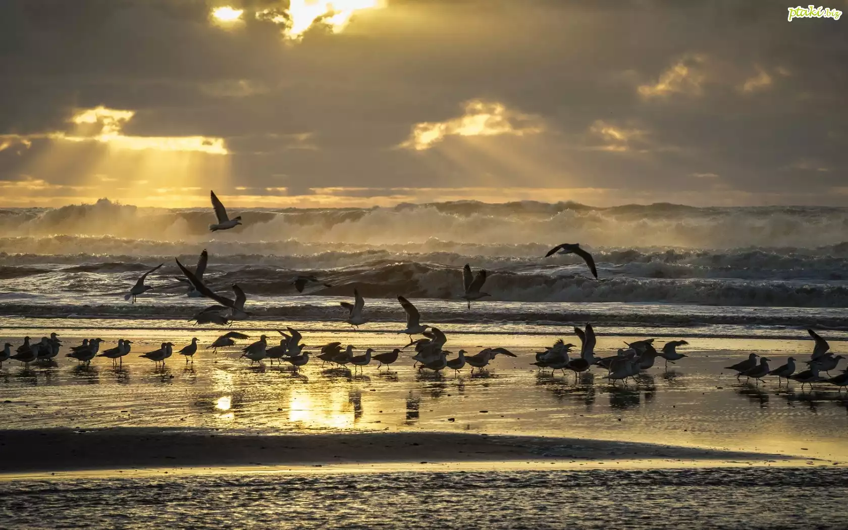 Zachód, Słońca, Promienie, Morze, Ptaki