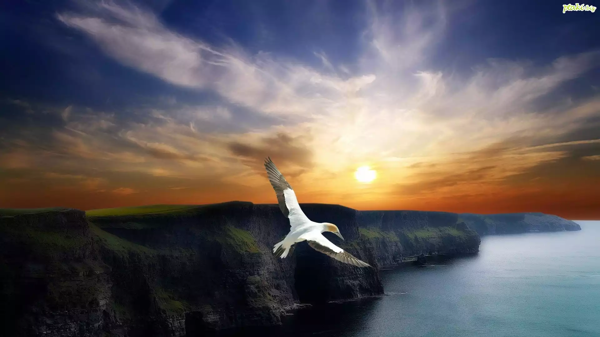 Zachód, Słońca, Morze, Ptak
