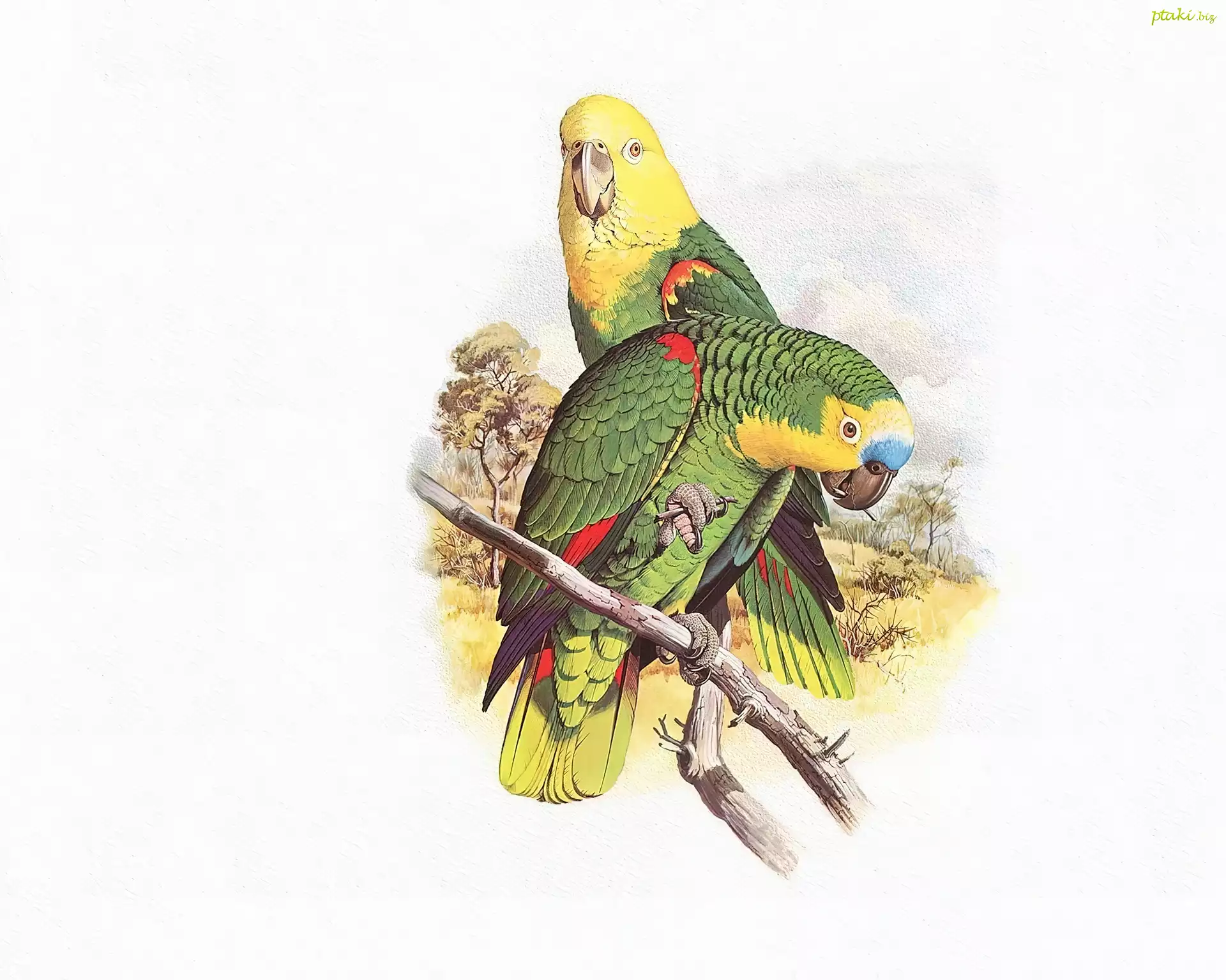 Zielone, Papugi, Żółte, Głowy, Edward Lear