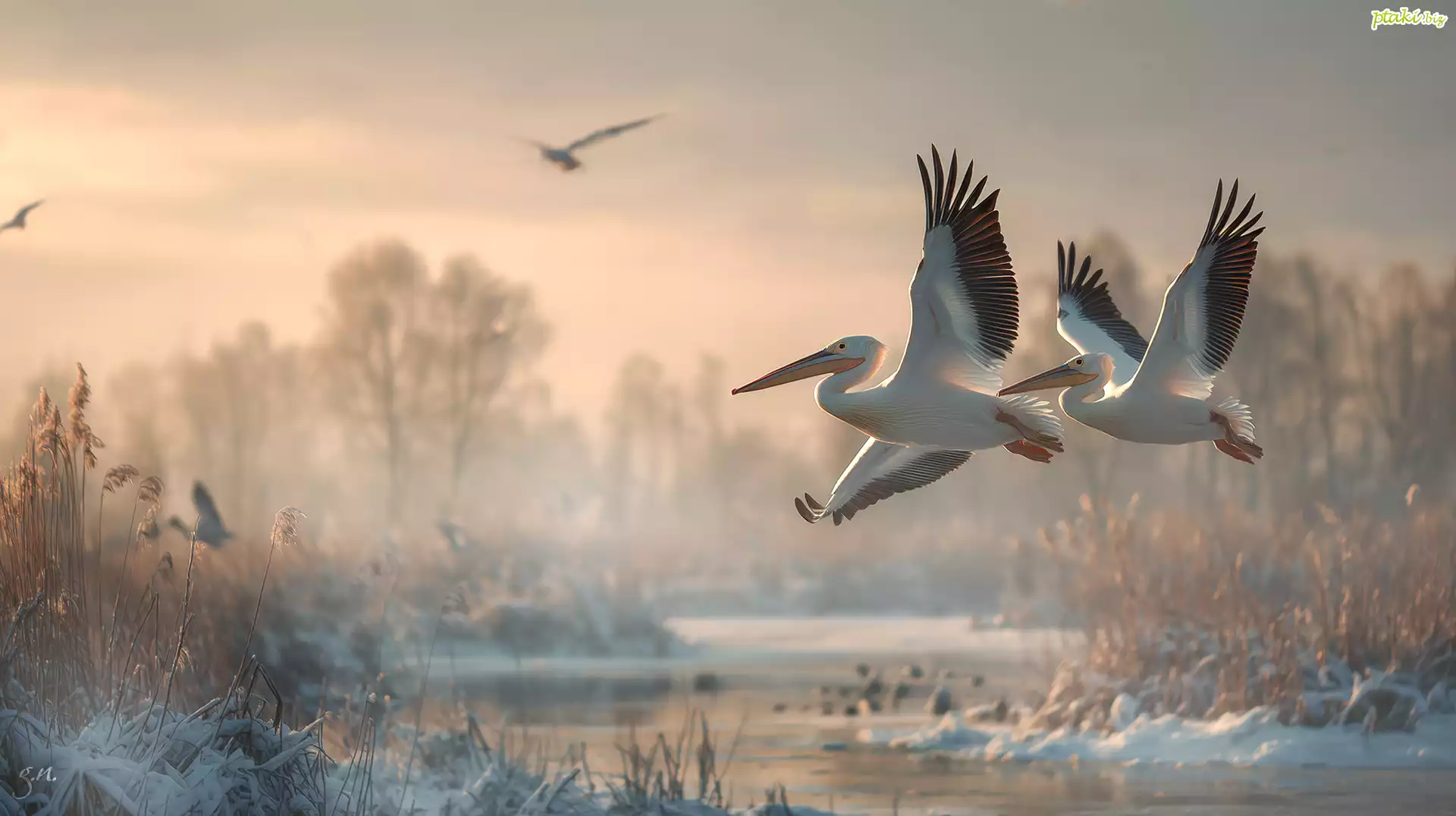 Dwa, Pelikany, Lot, Zima, Grafika AI