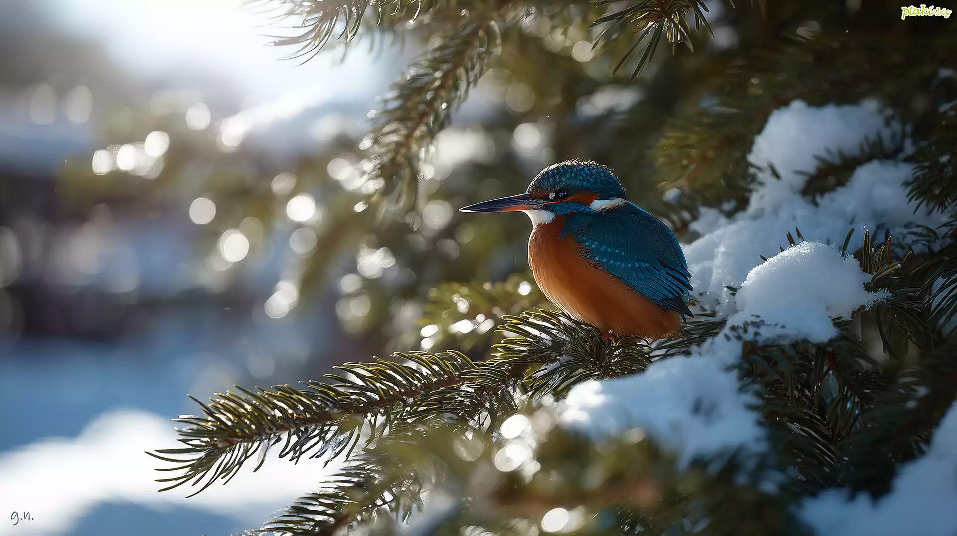 Zimorodek, Świerk, Śnieg, Zima, Grafika AI
