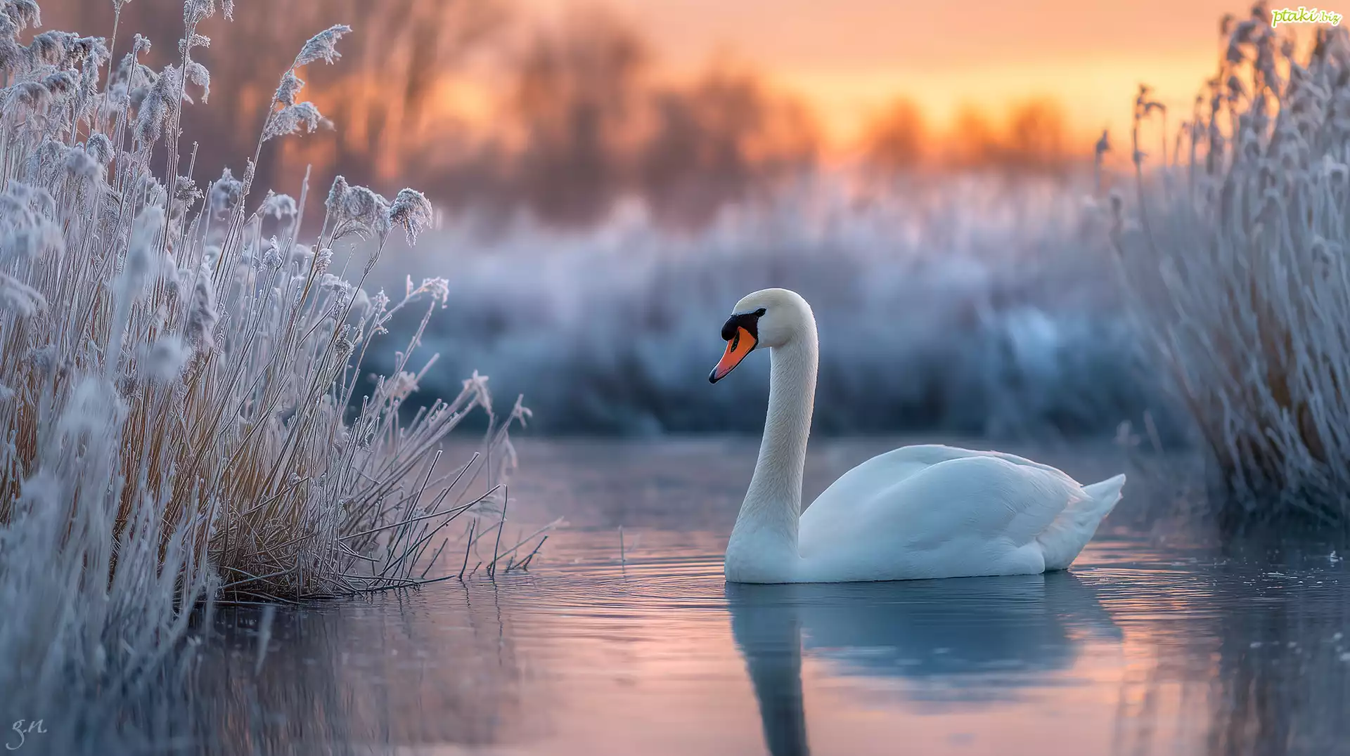 Łabędź, Woda, Zarośla, Zima, Grafika AI
