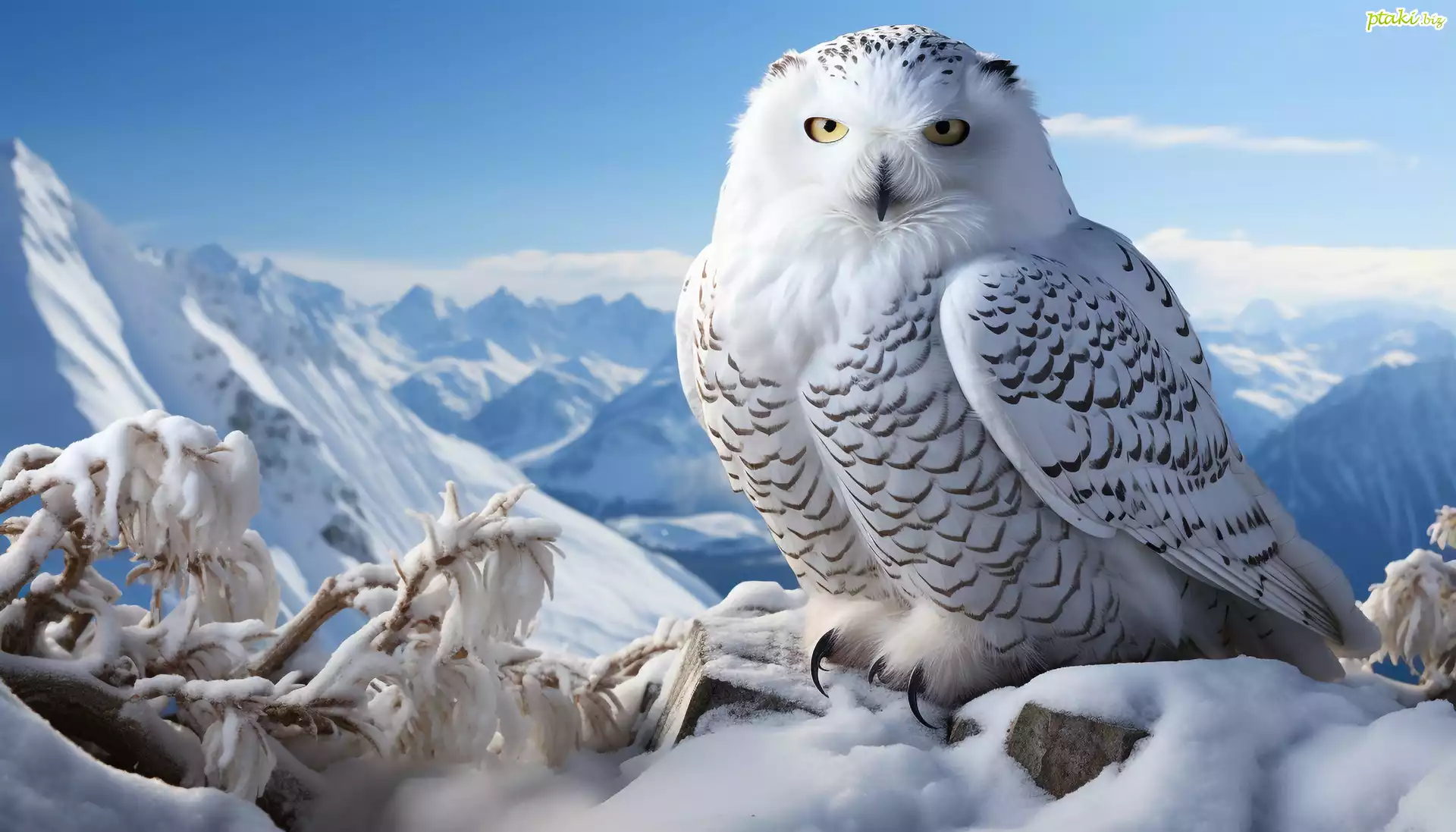 Sowa śnieżna, Ptak, Zima, Góry, Grafika