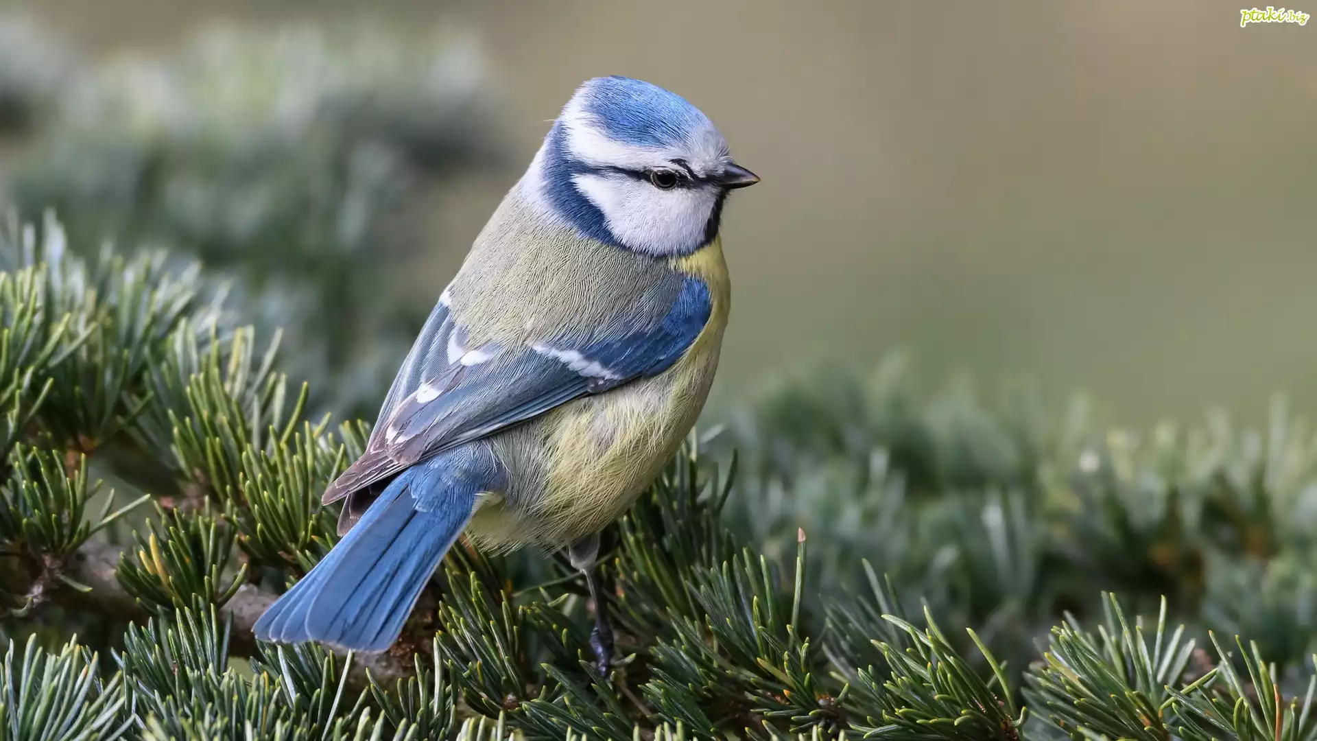 Ptak, Sikorka, Modraszka zwyczajna, Gałązki, Iglaki