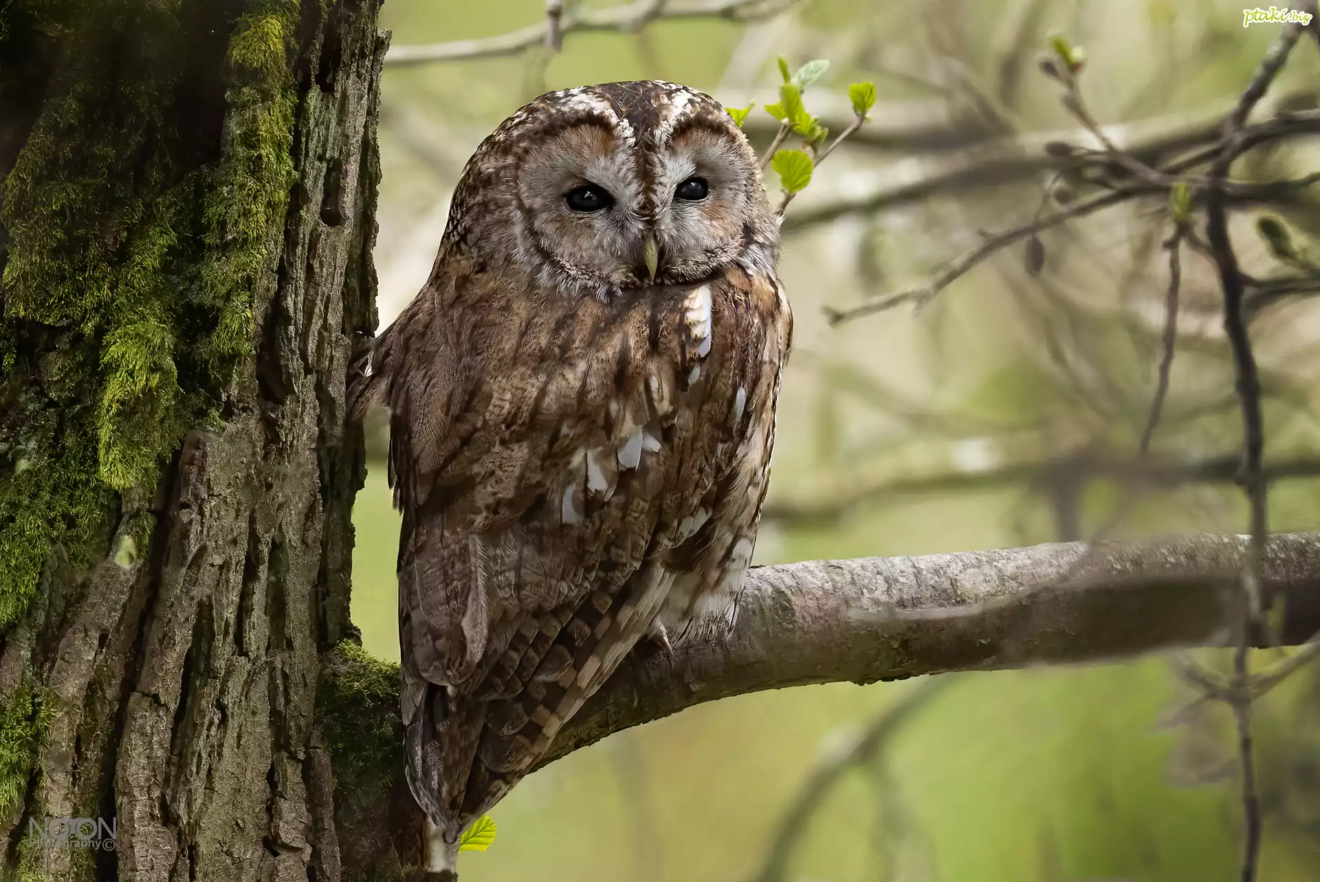 Puszczyk zwyczajny, Sowa, Drzewo, Gałąź